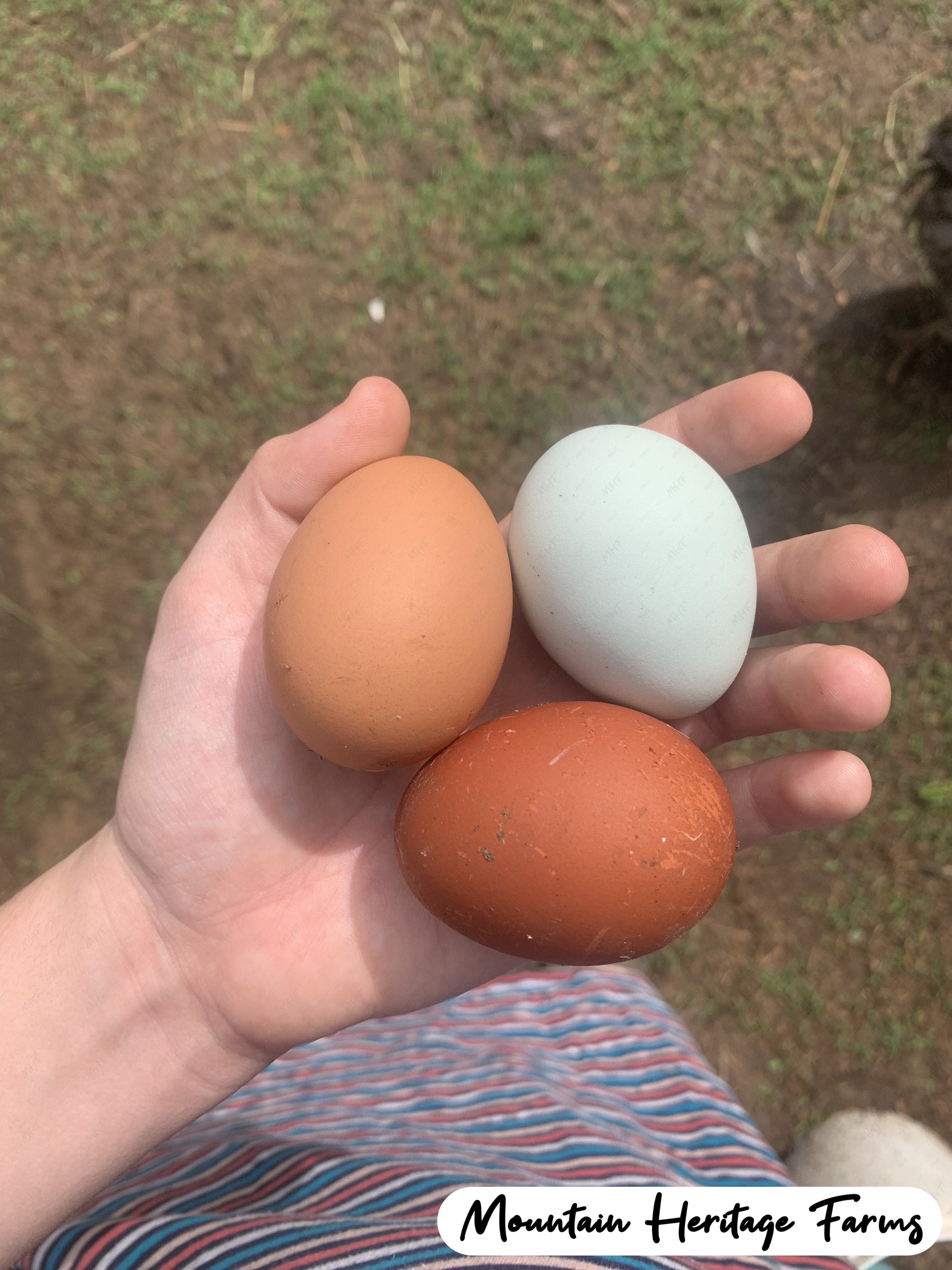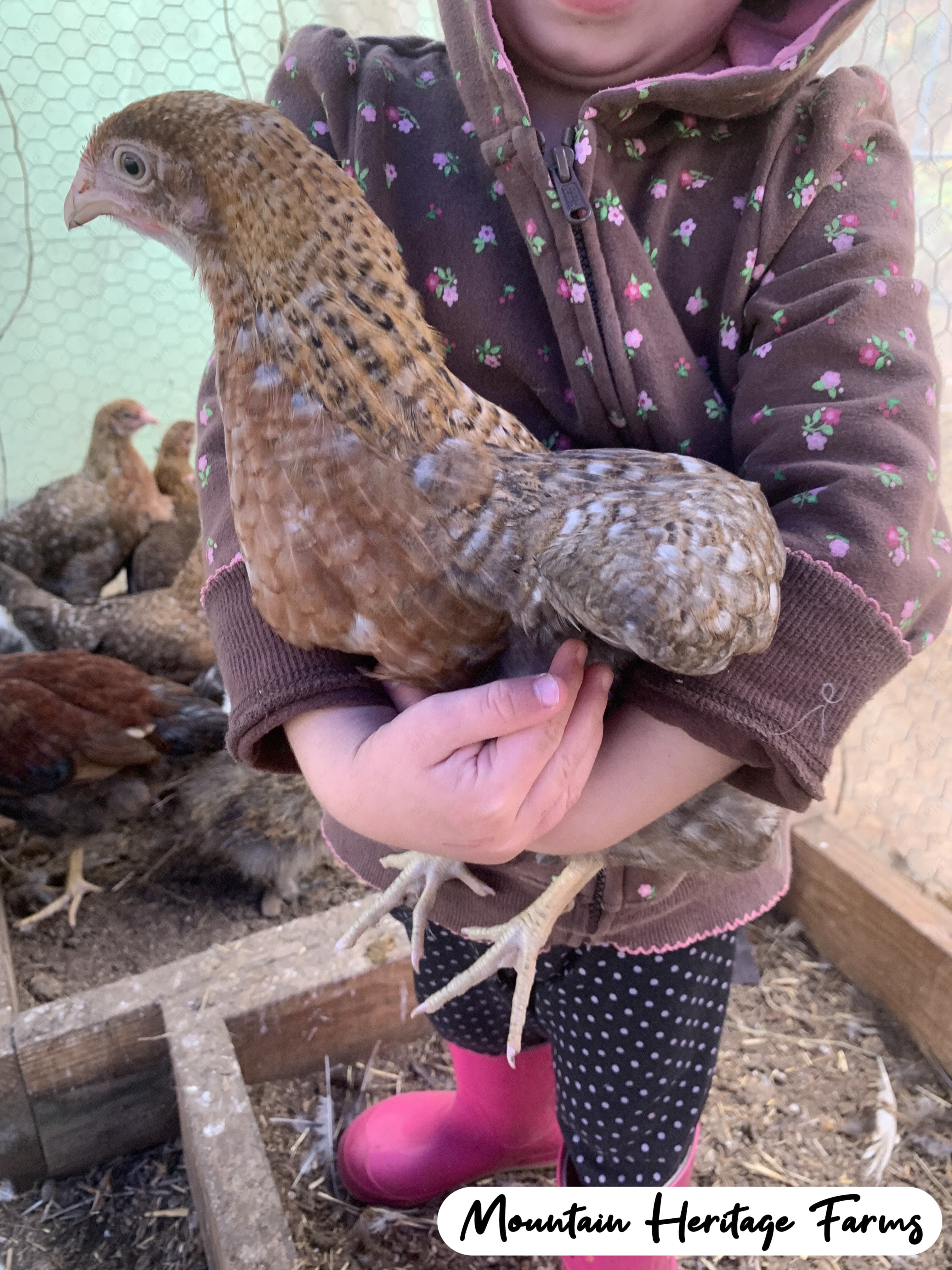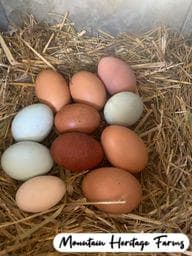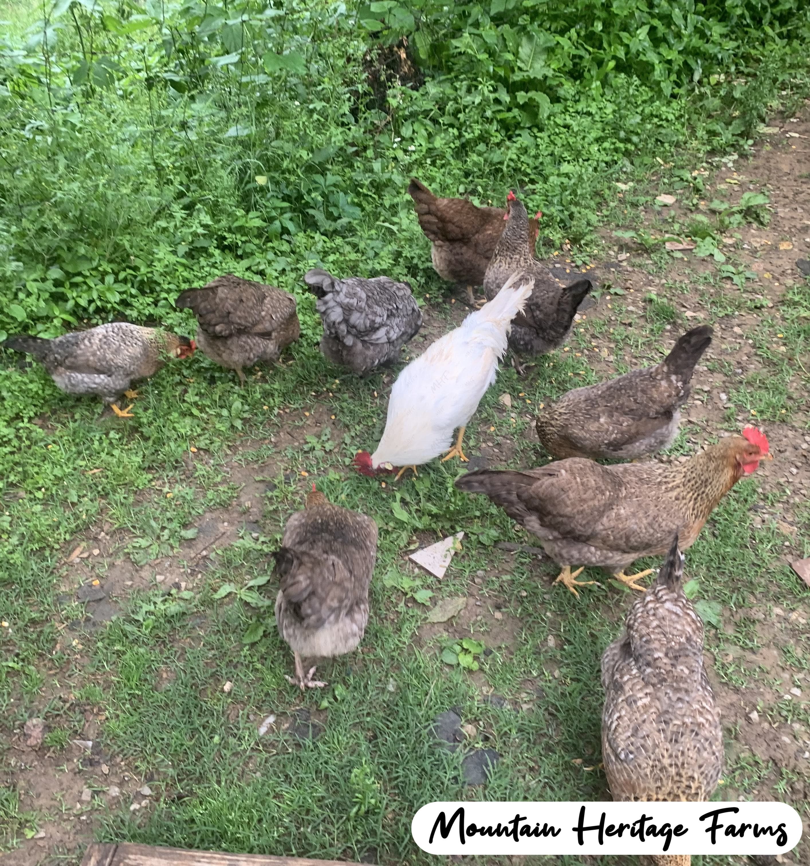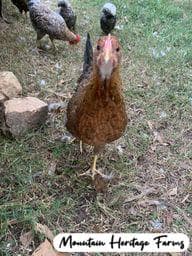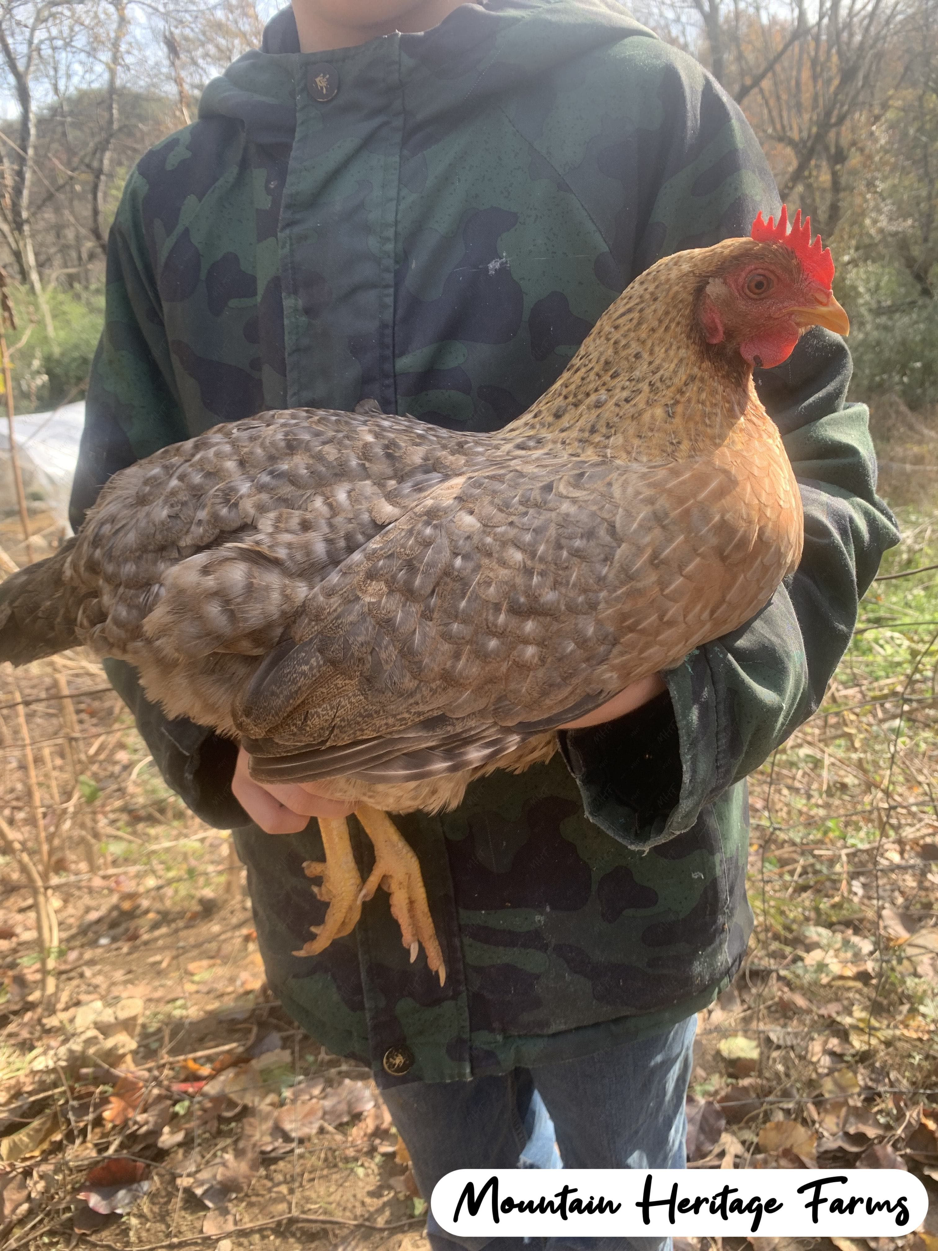 Exclusive hybrid developed by Mountain Heritage Farms from multiple heritage breeds. Designed to be a highly productive, autosexing, genetically diverse, and resilient egg layer for both beginners and seasoned keepers.