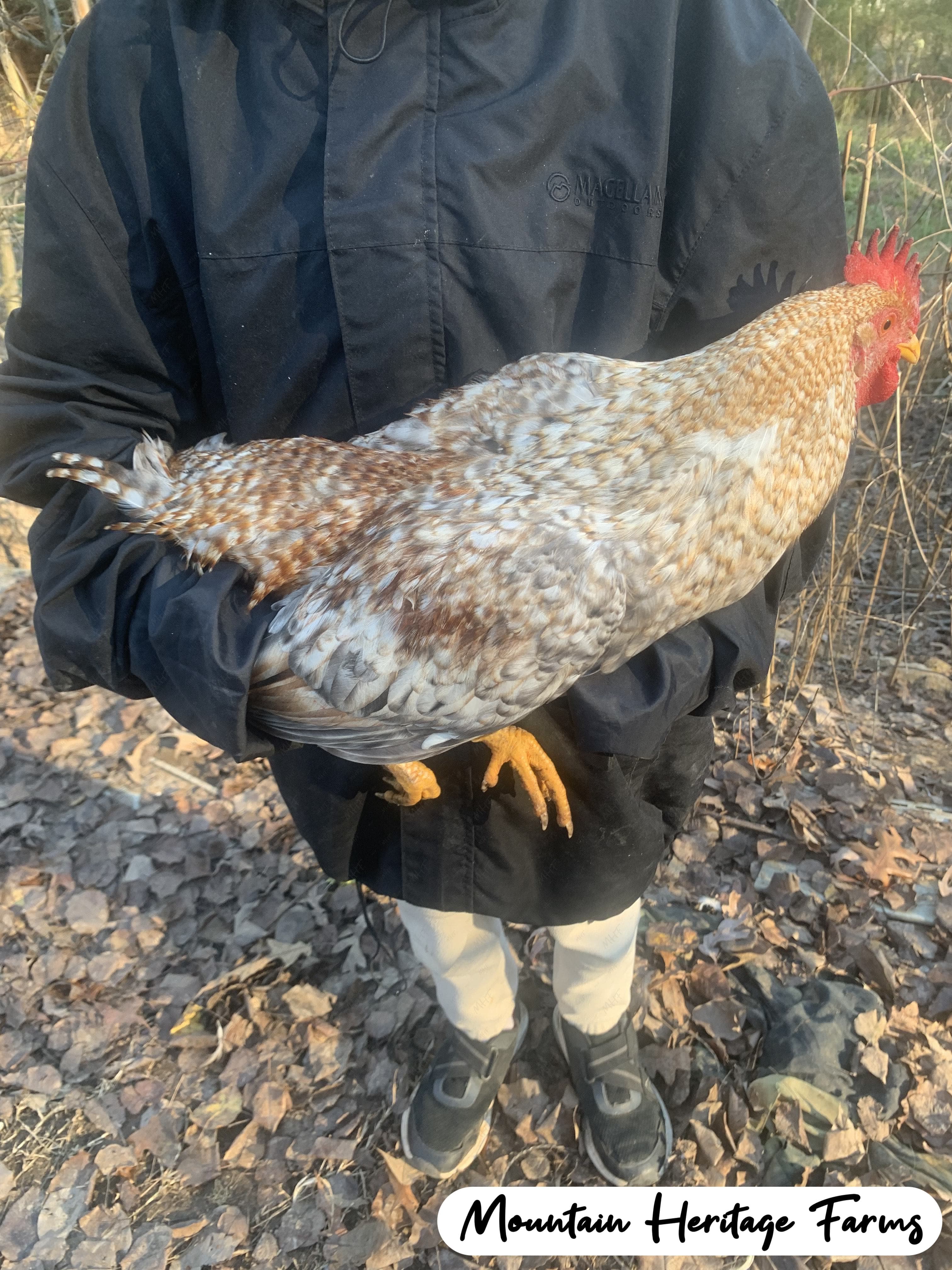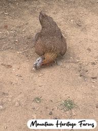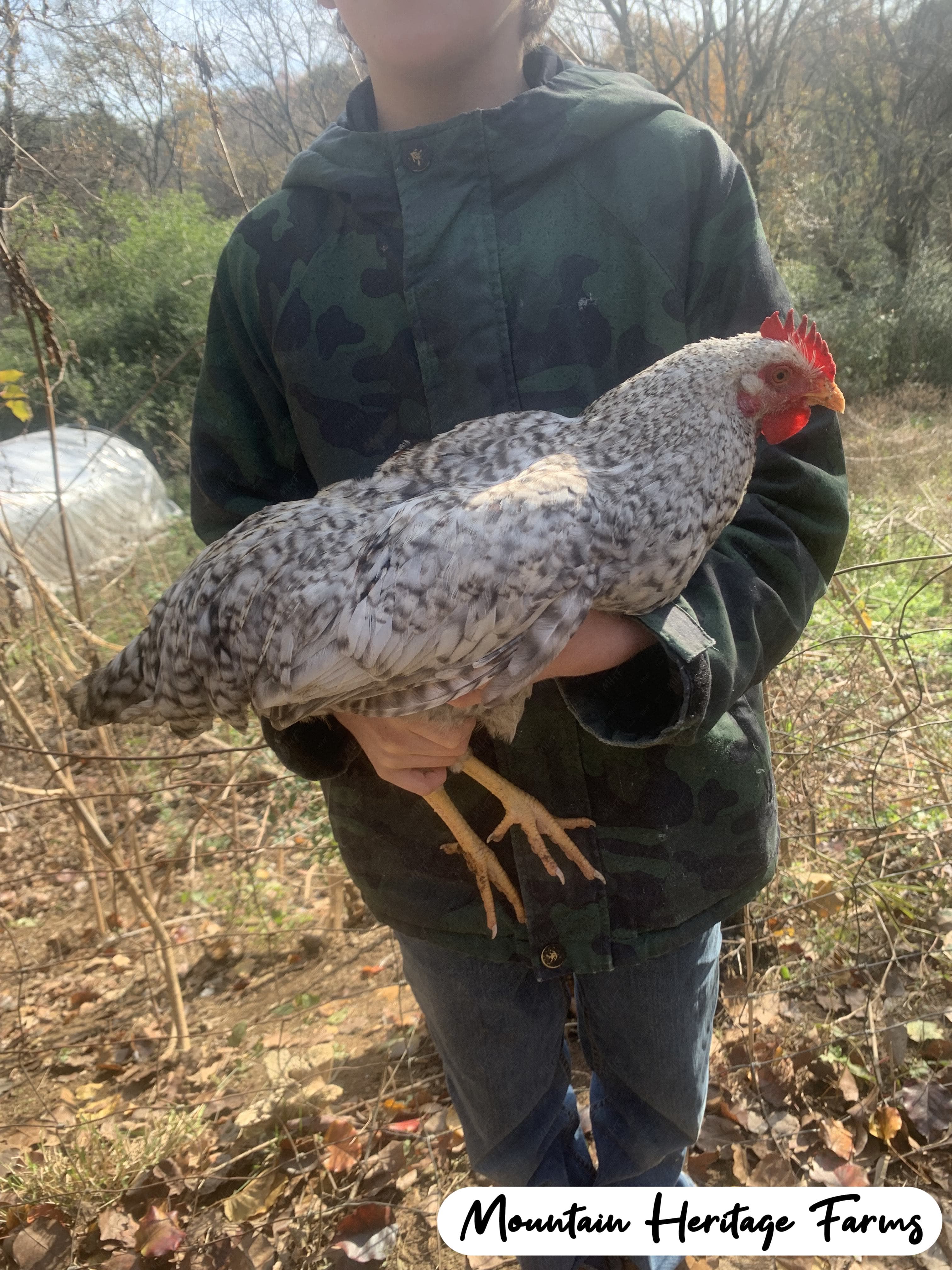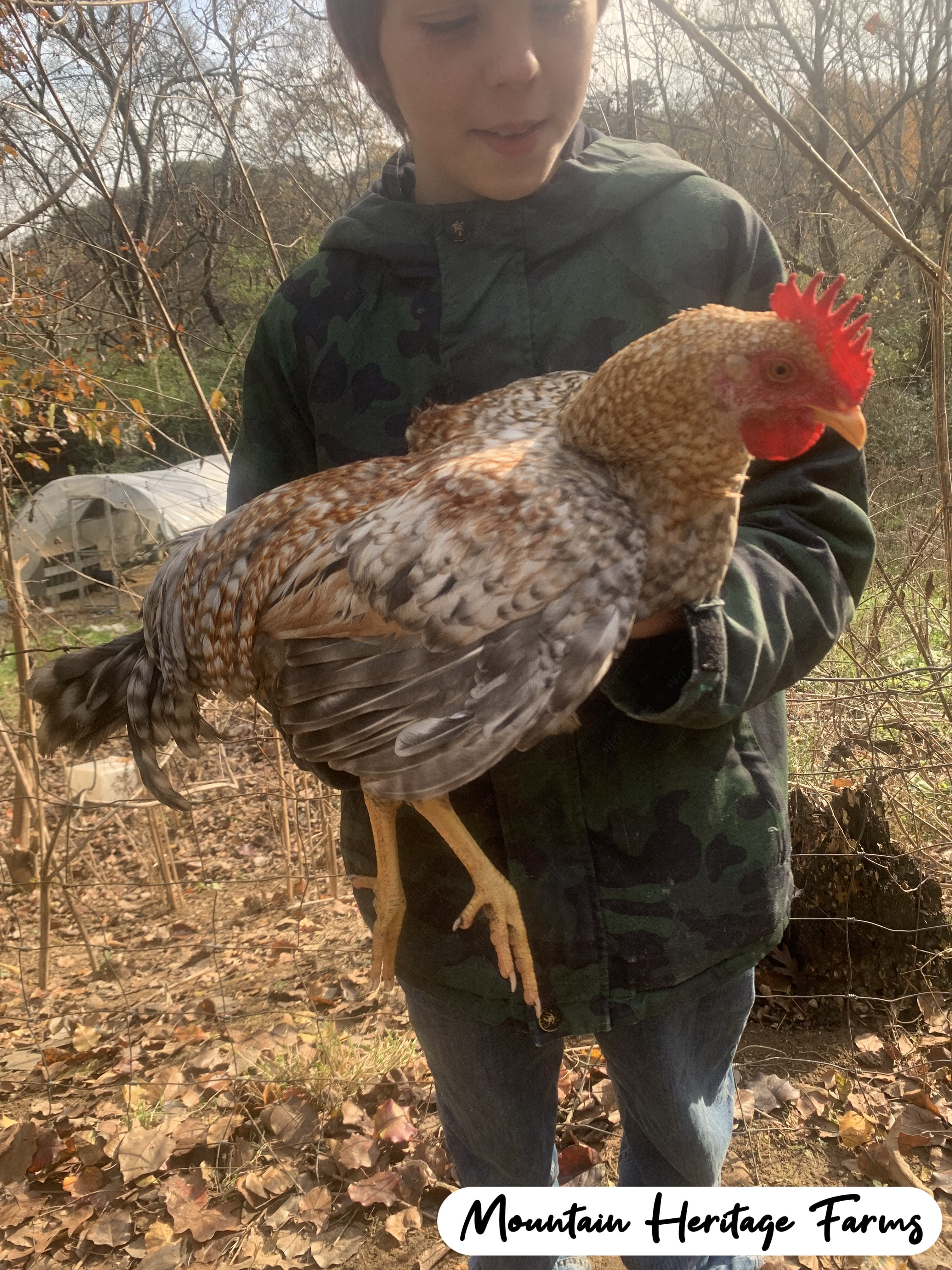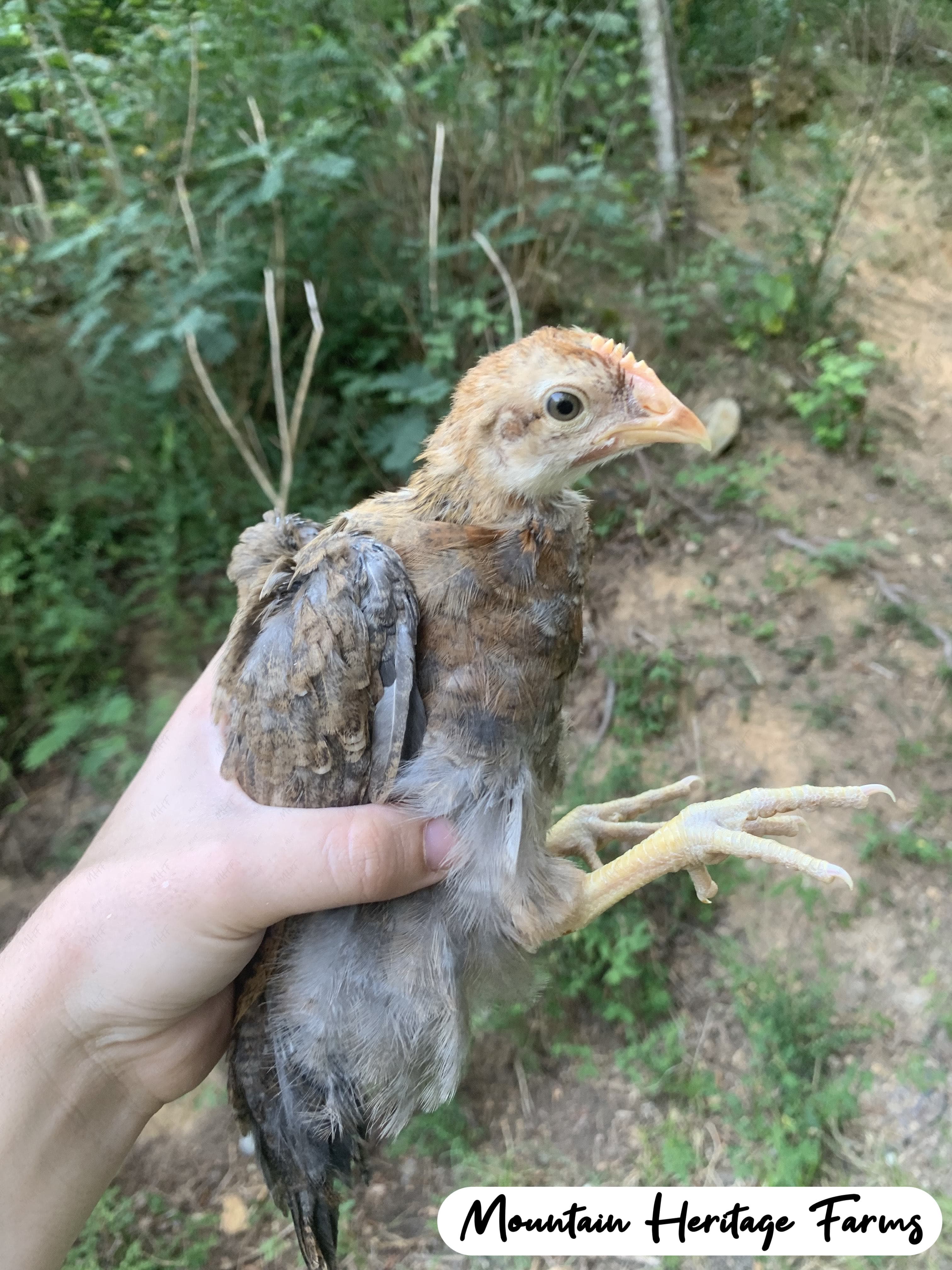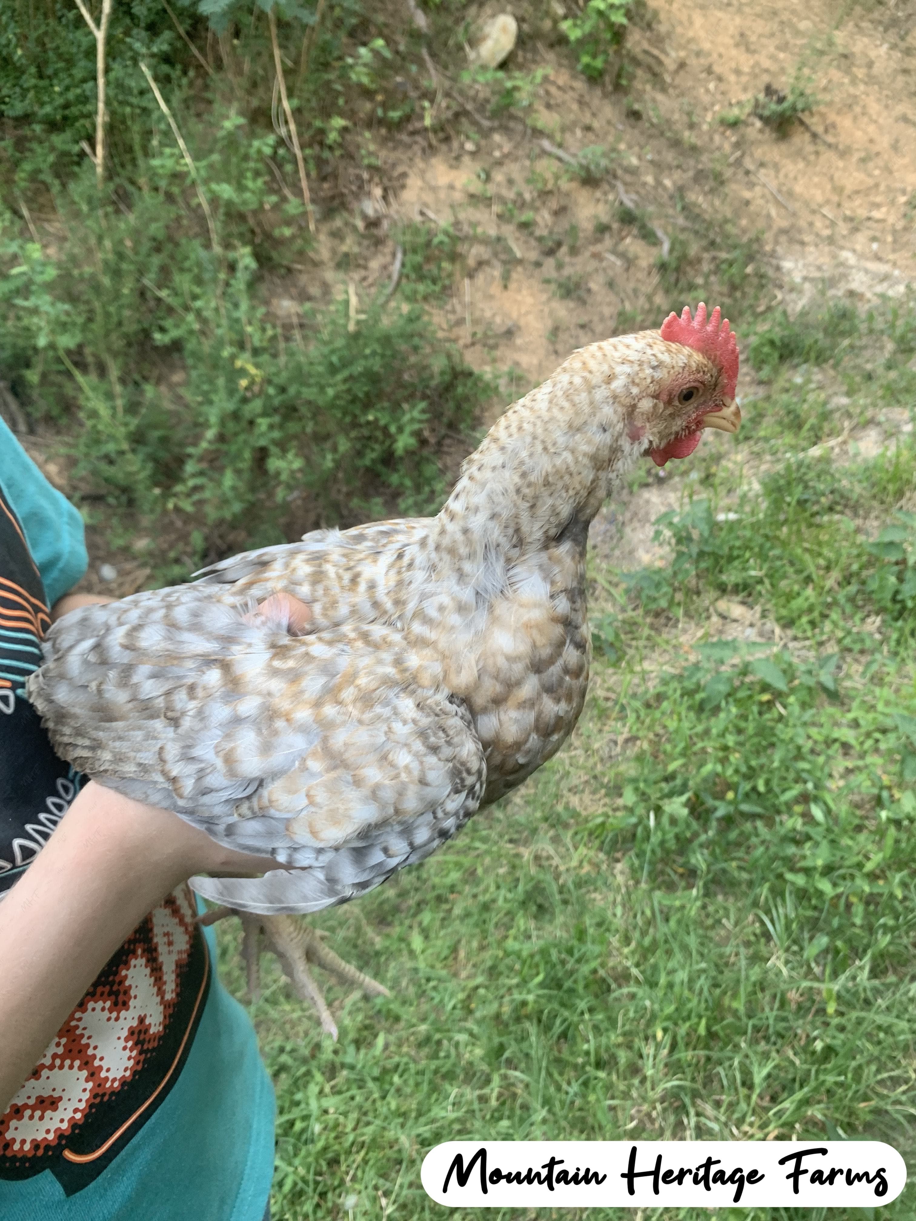Exclusive hybrid developed by Mountain Heritage Farms from multiple heritage breeds. Designed to be a highly productive, autosexing, genetically diverse, and resilient egg layer for both beginners and seasoned keepers.