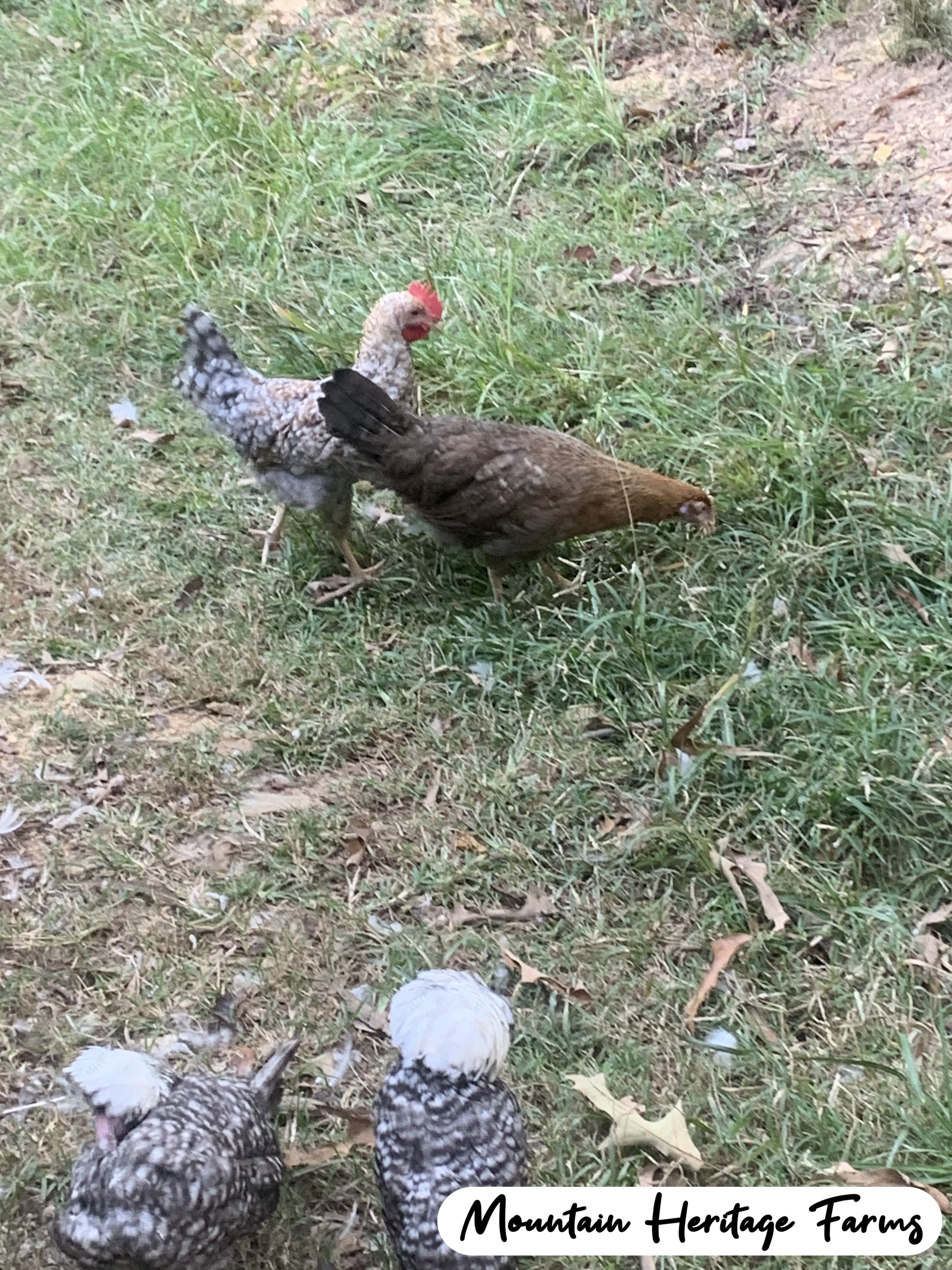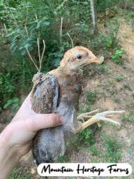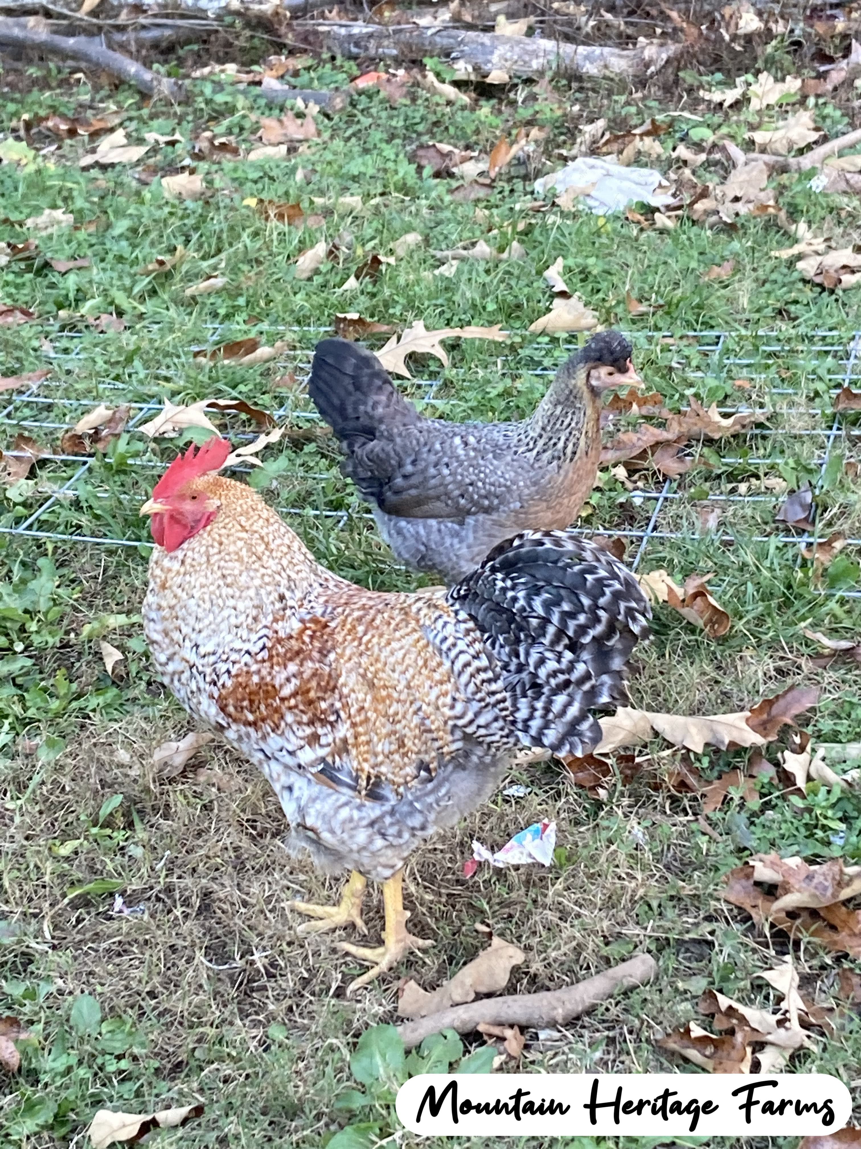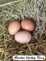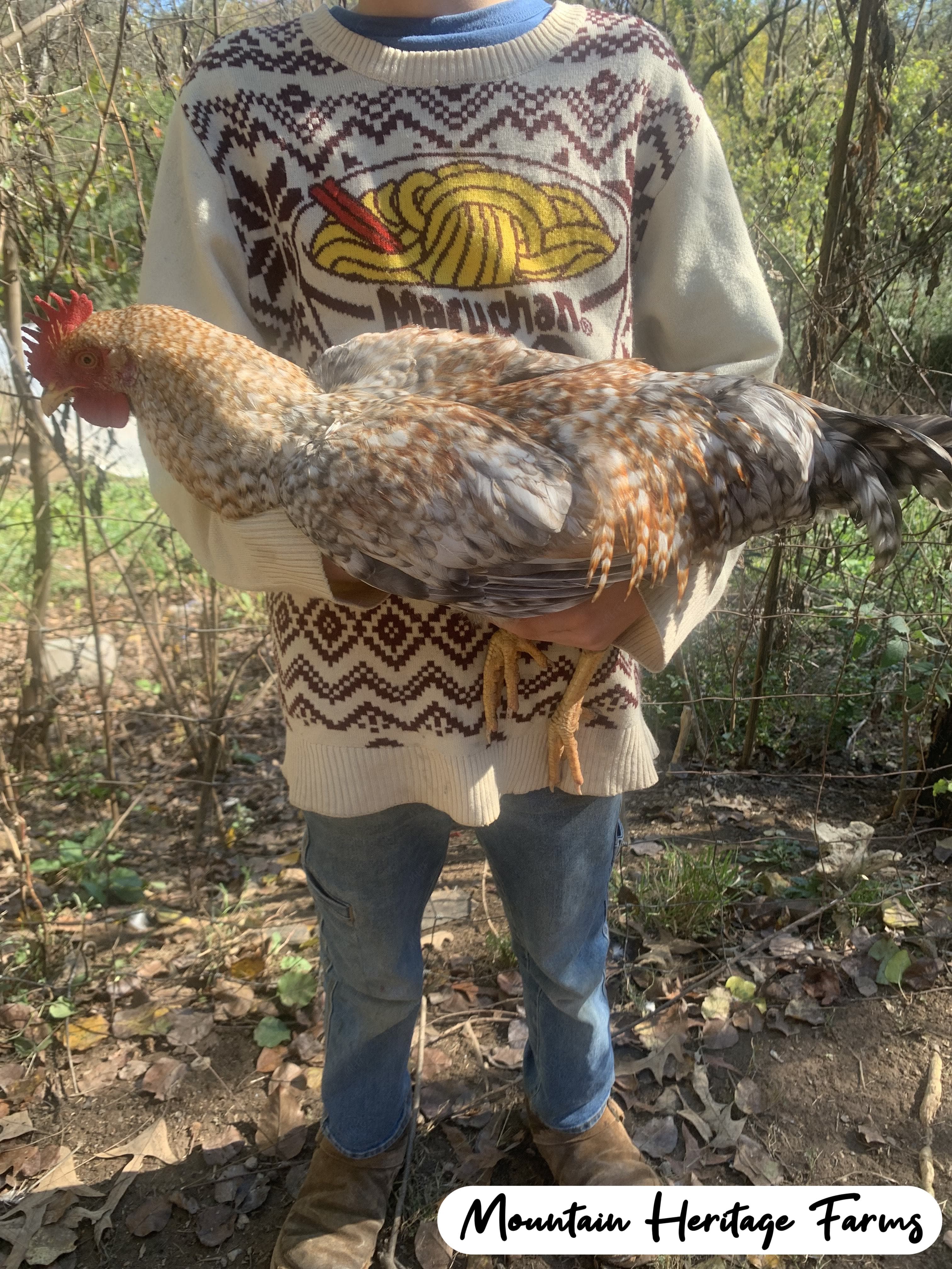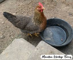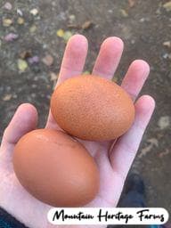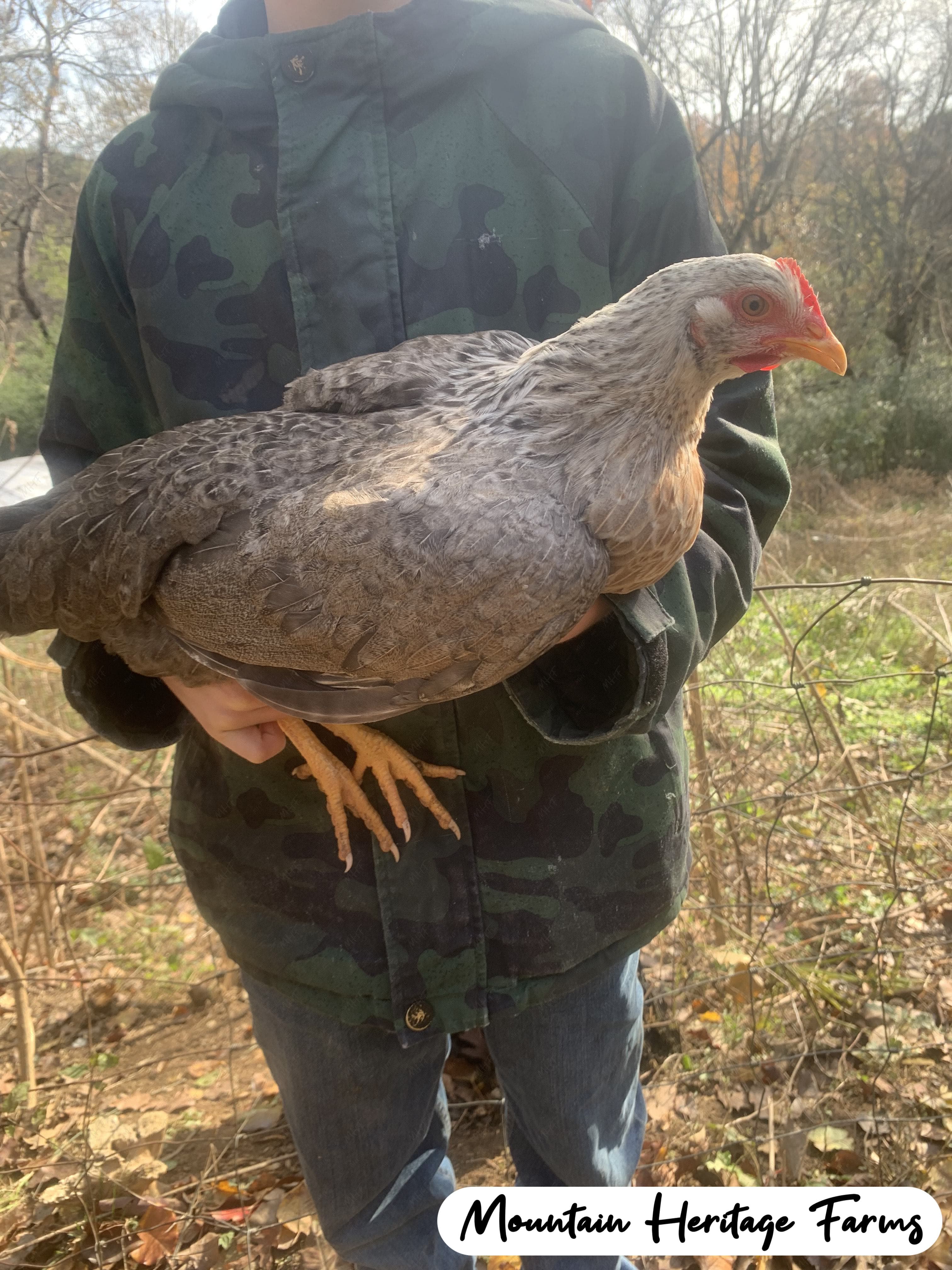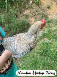 Exclusive hybrid developed by Mountain Heritage Farms from multiple heritage breeds. Designed to be a highly productive, autosexing, genetically diverse, and resilient egg layer for both beginners and seasoned keepers.