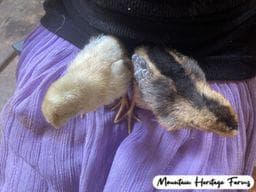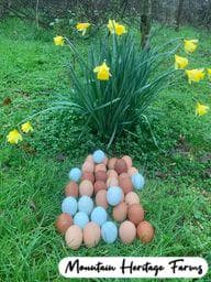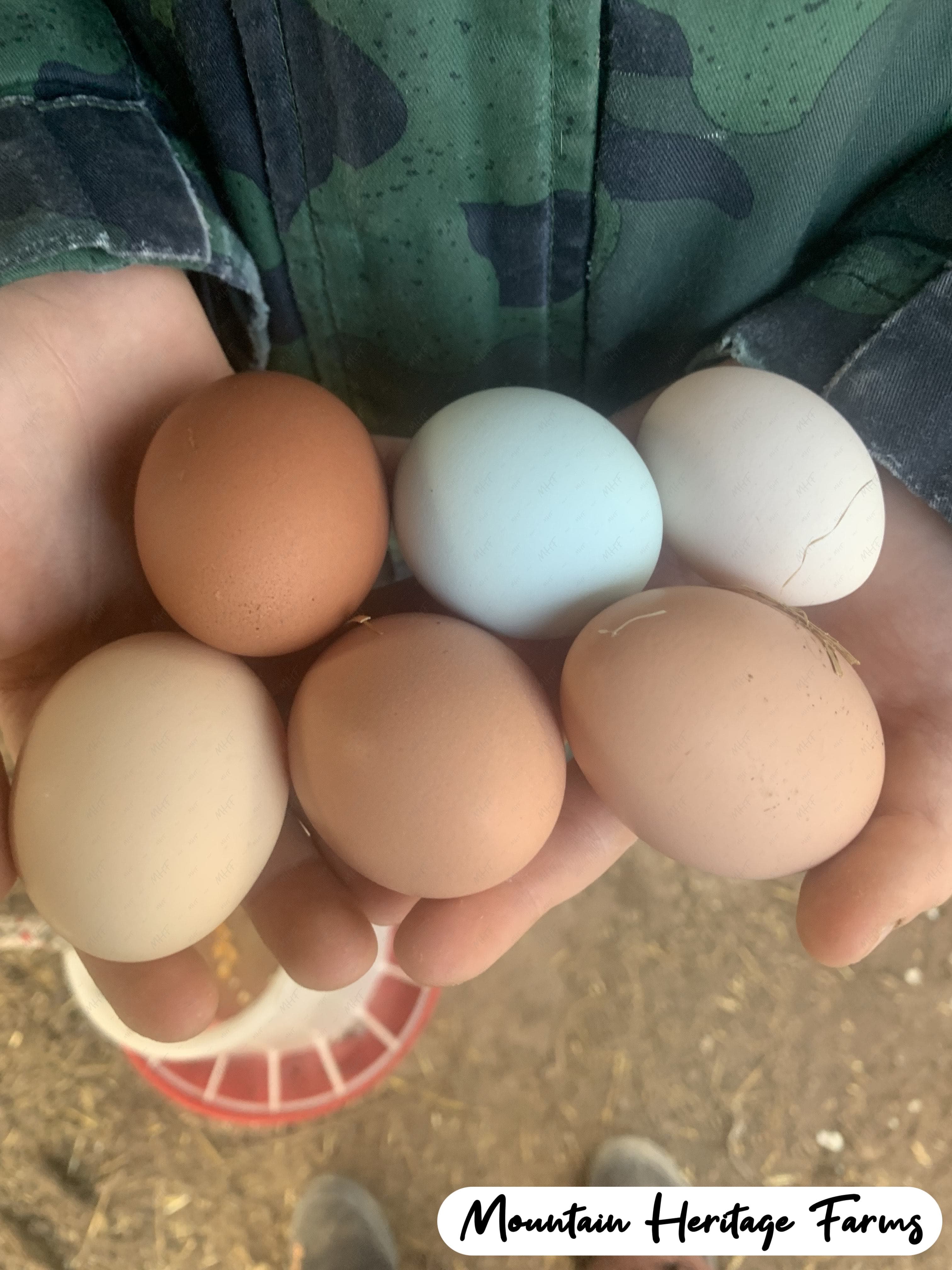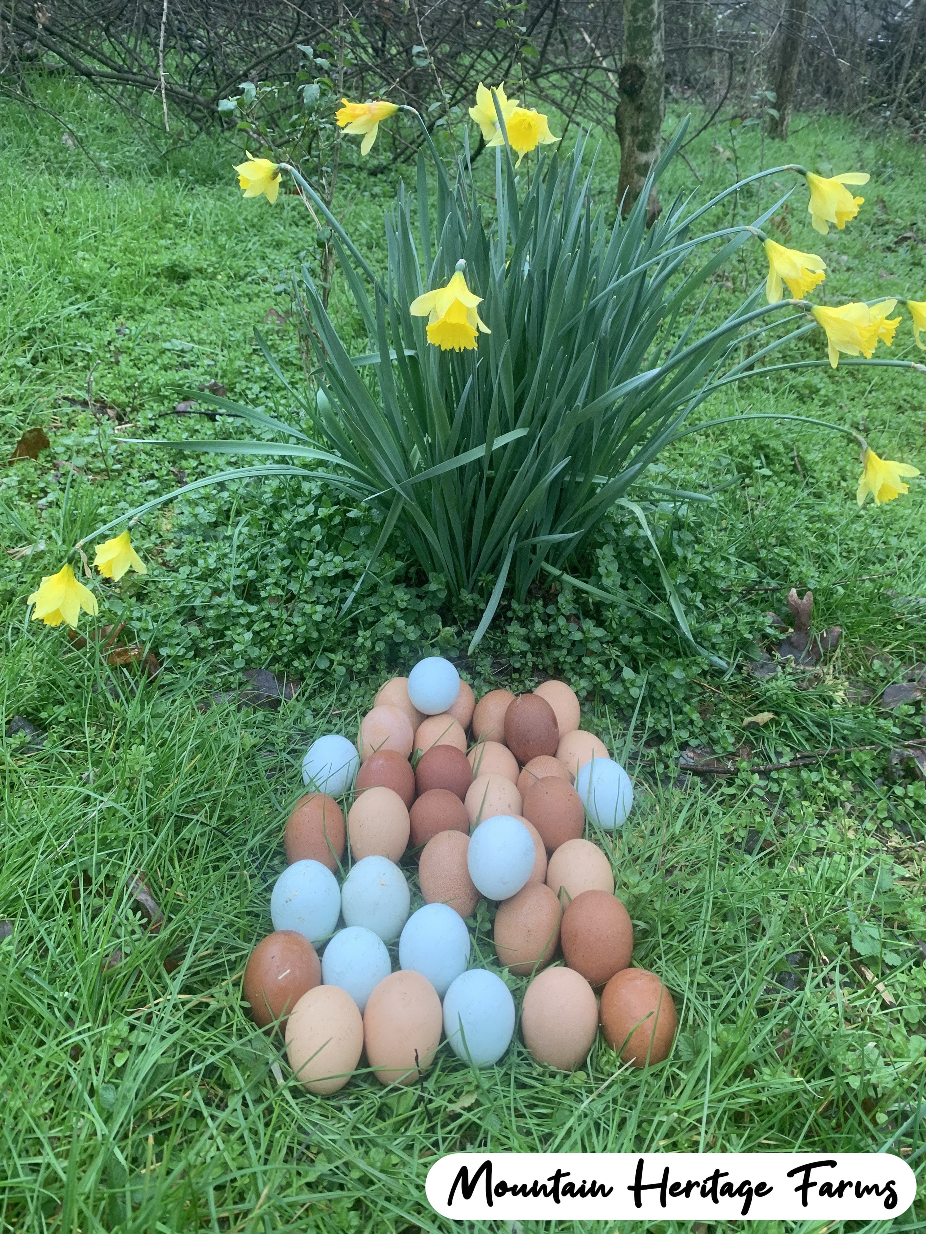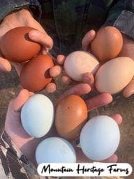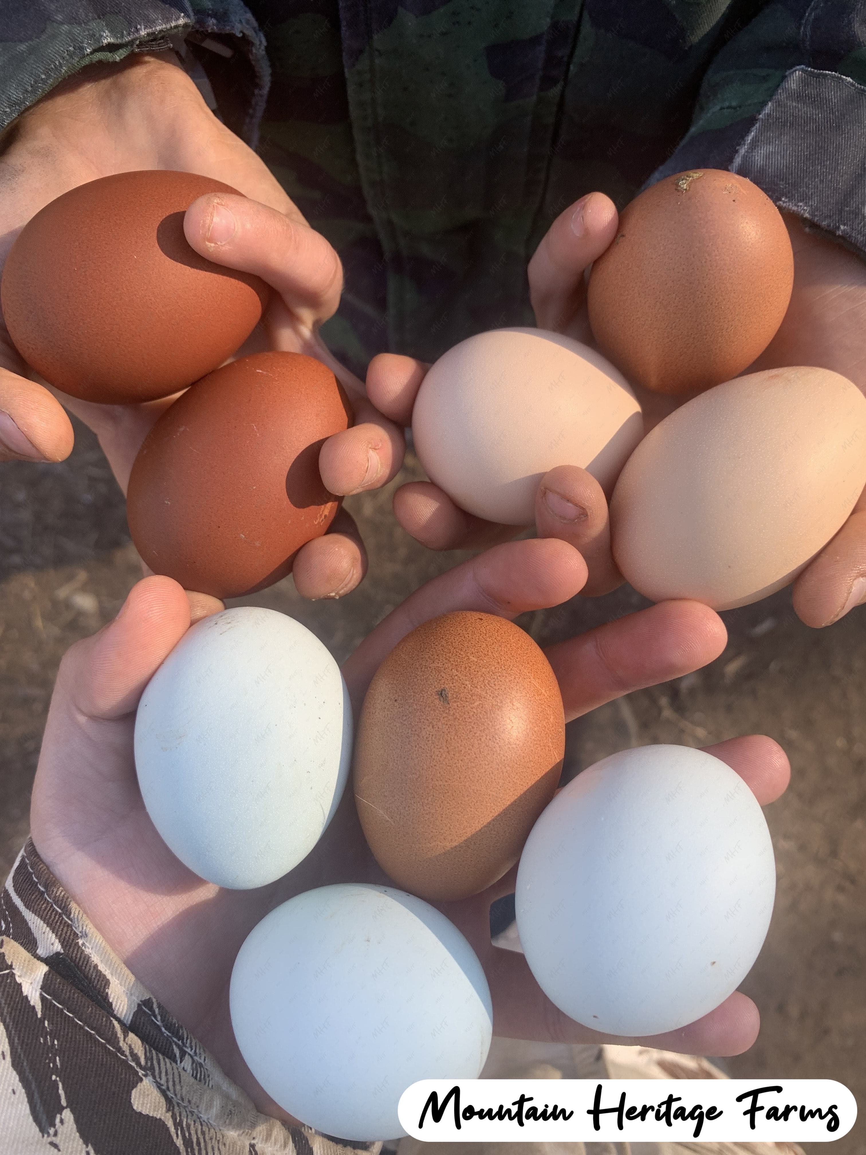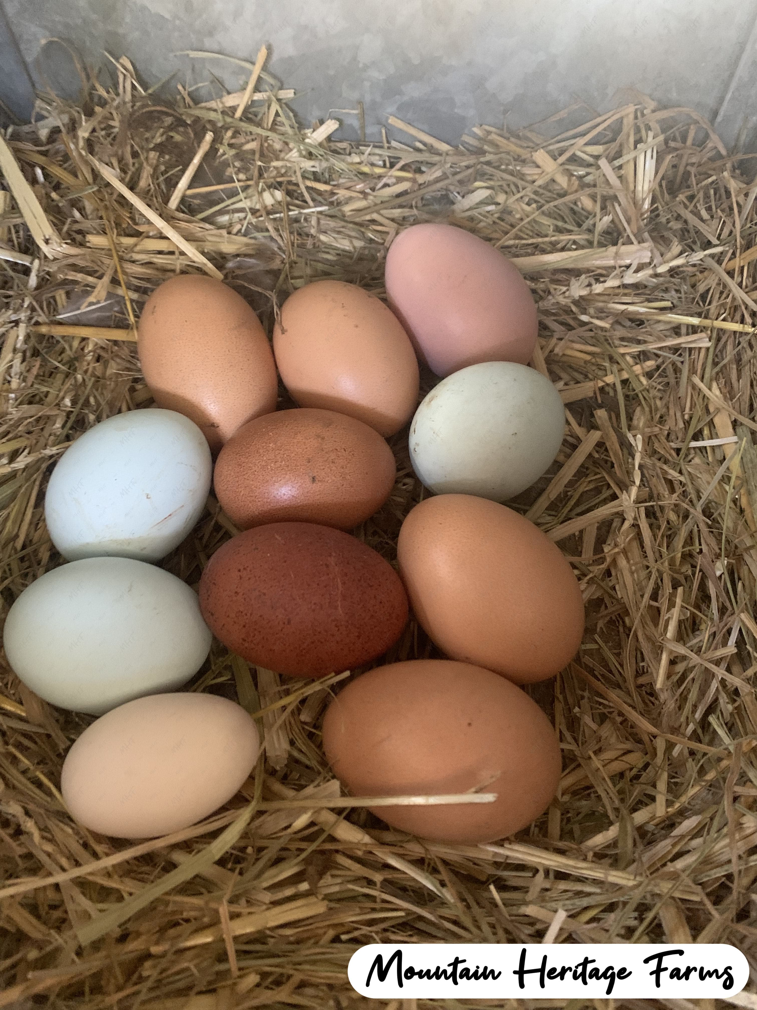 Exclusive hybrid developed by Mountain Heritage Farms from multiple heritage breeds. Designed to be a highly productive, autosexing, genetically diverse, and resilient egg layer for both beginners and seasoned keepers.